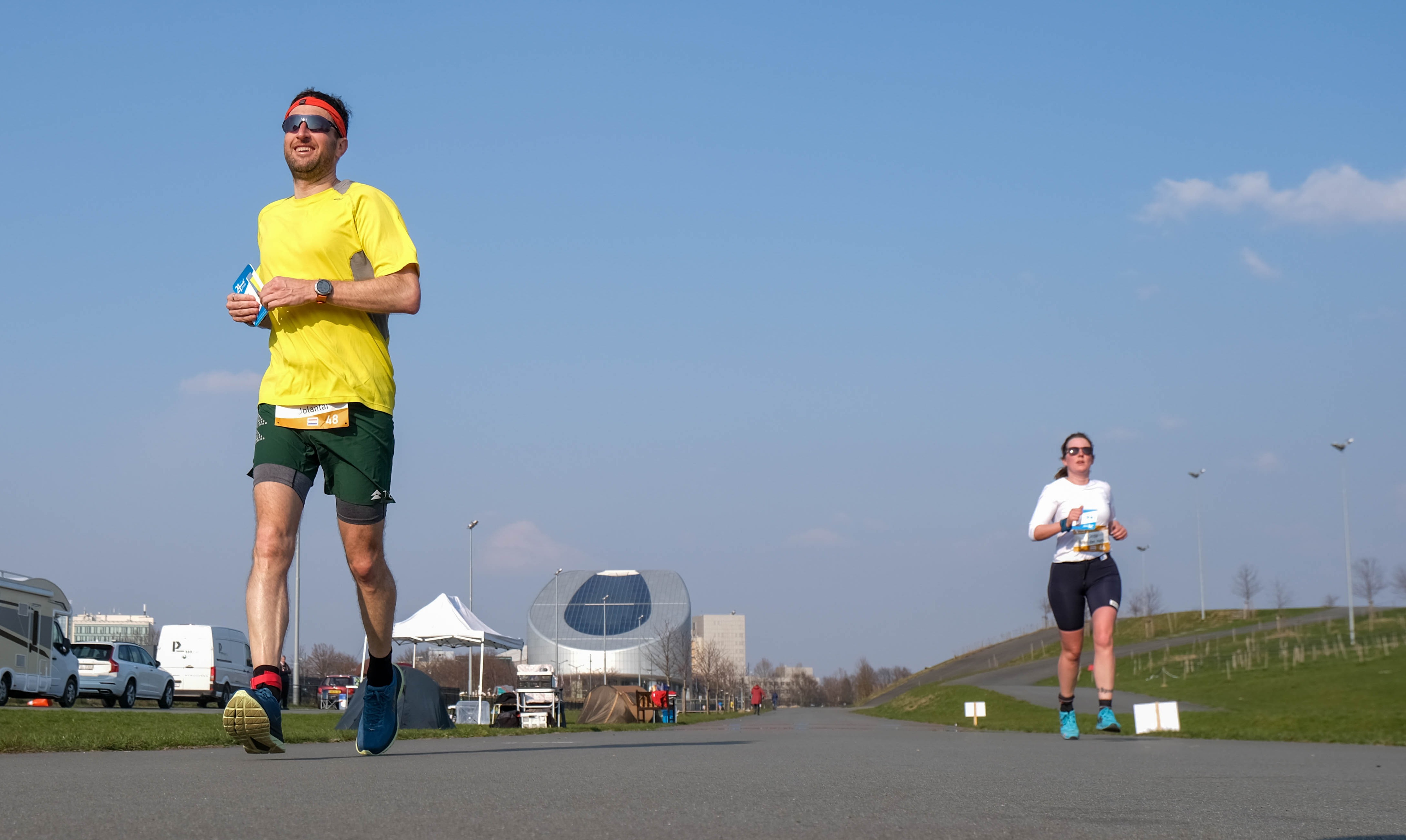 De sfeer is sportief en inspirerend: toeschouwers moedigen de atleten dag en nacht aan, terwijl de lopers elkaar door de zware uren heen slepen.