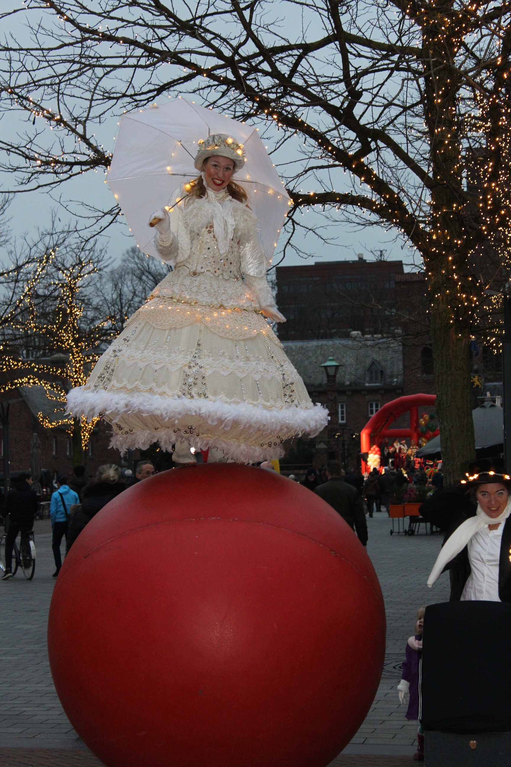 Princess on the Ball is een engelachtige verschijning die balancerend op een 1 meter 70 hoge rode Kerstbal zich voortbeweegt door het publiek. Een ontmoeting die iedereen nog lang zal heugen.