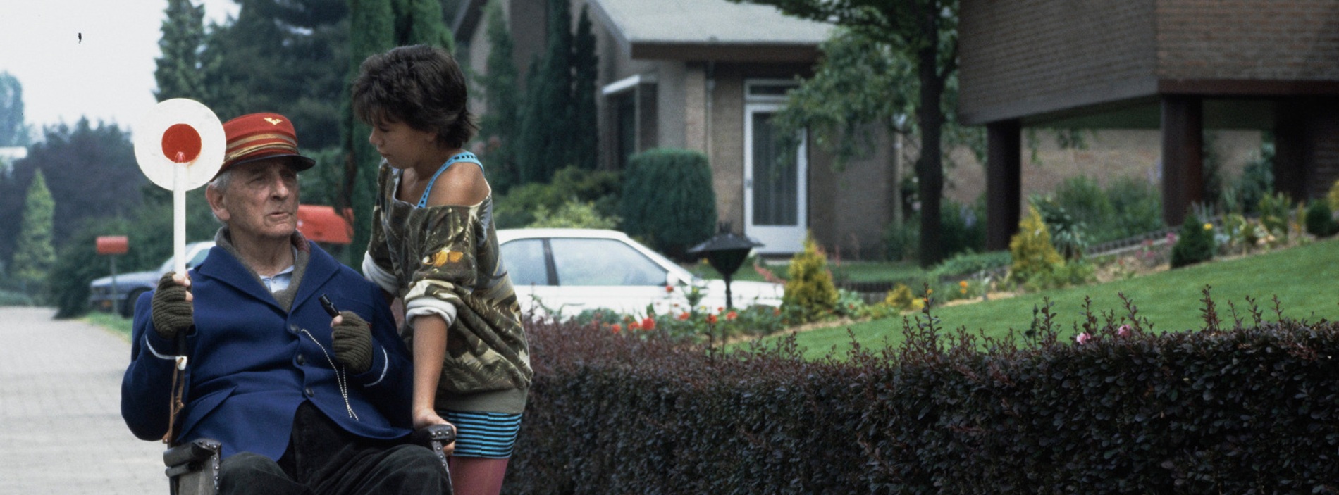 Op de plek waar je nu staat, begon dat legendarische moment. Zo’n 40 jaar geleden rolde Opa Flodder hier met zijn rolstoel de helling af, vanaf de Reubsaetlaan. Wat begint als een onschuldige afdaling, verandert al snel in pure chaos wanneer hij het steegje van de Charles Beltjeslaan inschiet, recht op zijn onvermijdelijke eindbestemming af. Met vaart verdwijnt hij vervolgens in het water.